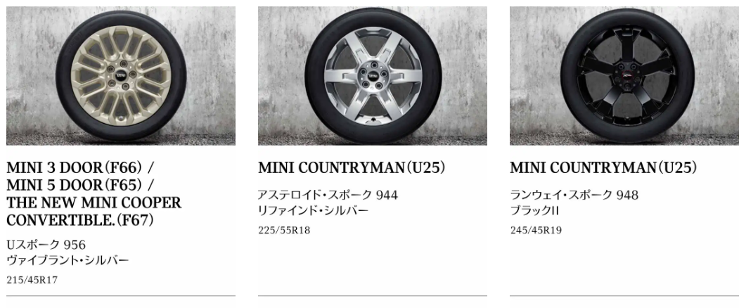 左と左下の画像より、2025-2026 MINIウィンター・コンプリート・ホイール・セットの一部商品を紹介いたします!