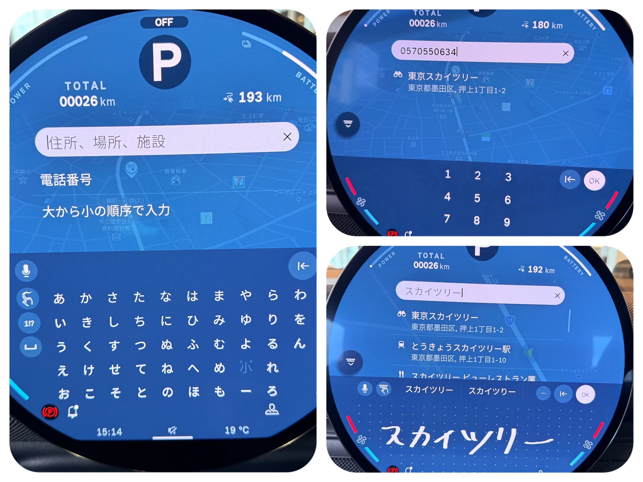 目的地設定(虫眼鏡マーク)を押すと、画像のように目的地を入力する画面がでます。